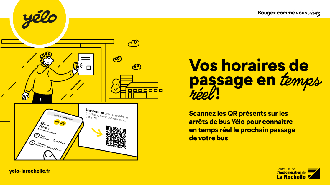 Depuis plusieurs semaines maintenant, des QR codes ont fait leur apparition aux arrêts Yélo : scannez-les avec votre portable pour consulter les prochains passages de leur bus, estimé grâce à des données en temps réel !